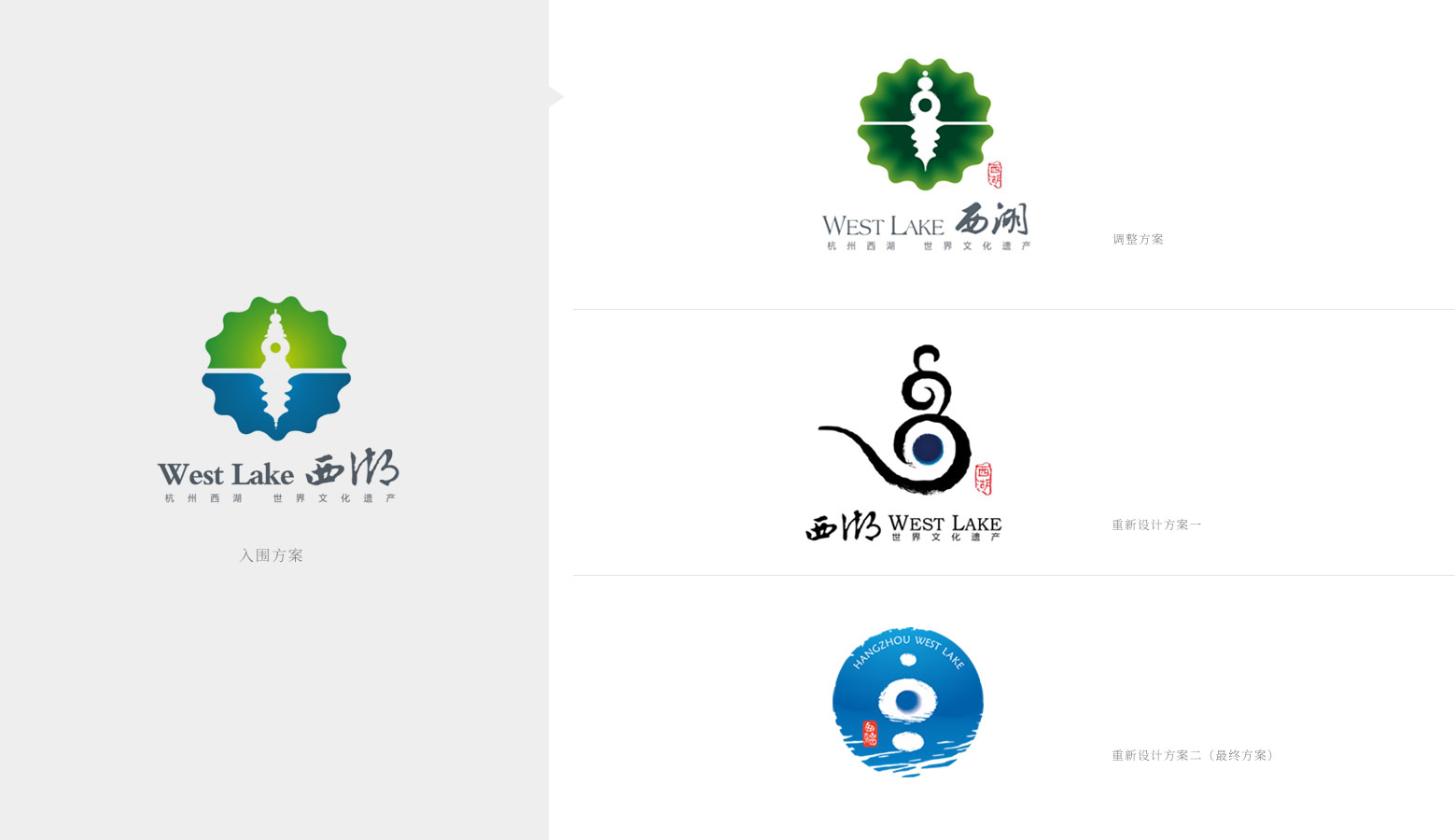 2011年11月,杭州西湖風(fēng)景名勝區(qū)管理委員會啟動西湖logo全球征集活動,共收到來自英國、新加坡、法國、印度等國設(shè)計師和北京奧運(yùn)會、上海世博會、第八屆殘運(yùn)會等徽標(biāo)設(shè)計者,以及專業(yè)院校、專業(yè)機(jī)構(gòu)遞交的作品1500多個,杭州好西好品牌設(shè)計師鄭浪的設(shè)計方案從中脫穎而出奪得大獎,并最終入選采用。